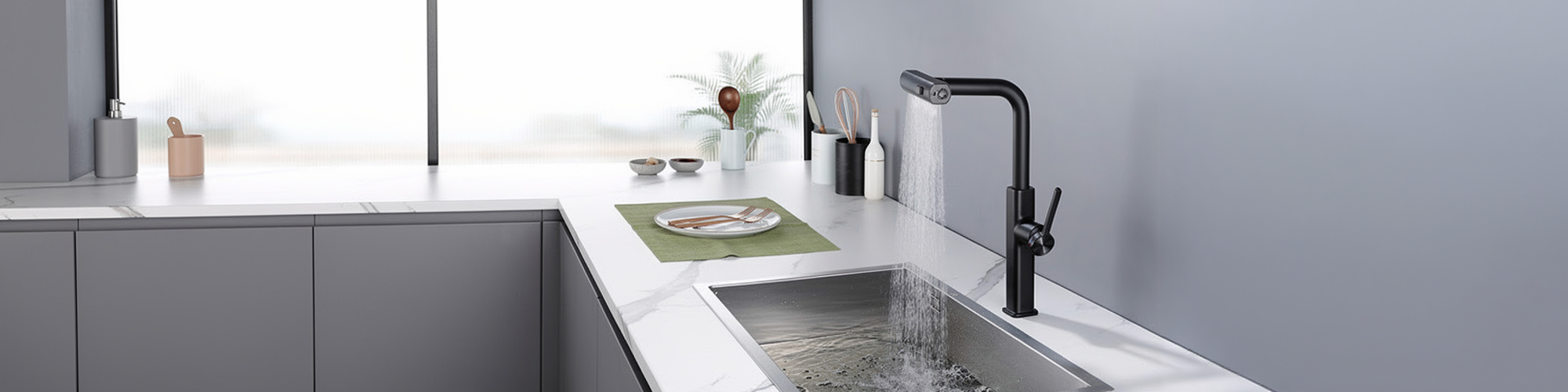 Features: Dual-Function Sprayer: Pull-Down Sprayer with swivel adapter, stream & spray Fluent-Retract Technology: Flexible hose with counterweight High ...
